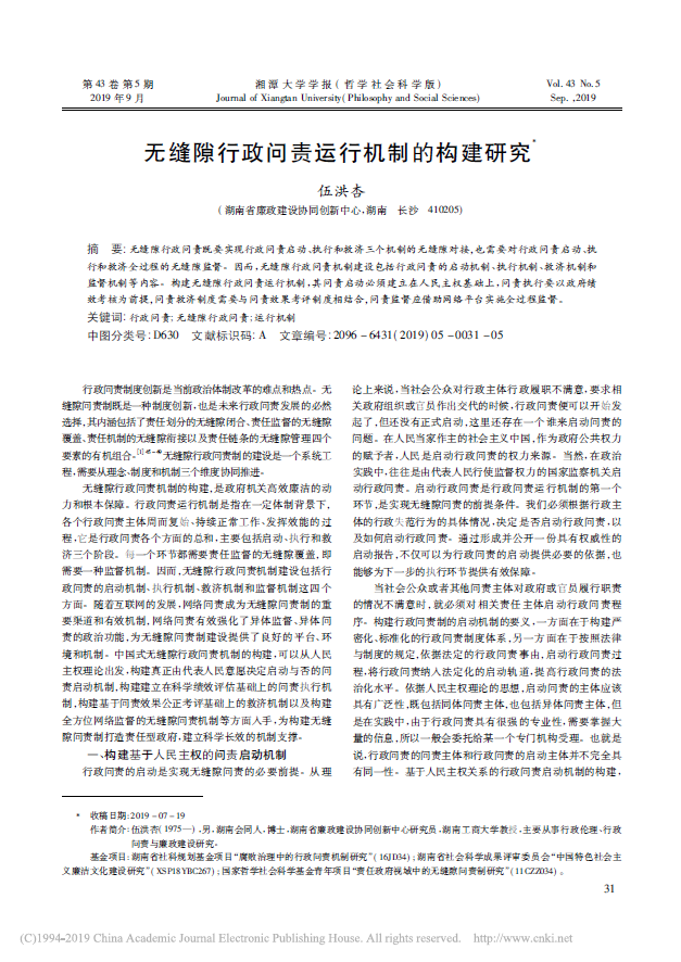 伍洪杏:无缝隙行政问责运行机制的构建研究