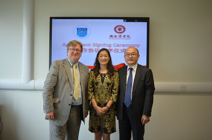 6月10号陈晓红校长与都柏林理工大学校长、中国驻爱使馆教育组吴晓创组长签署合同后留影