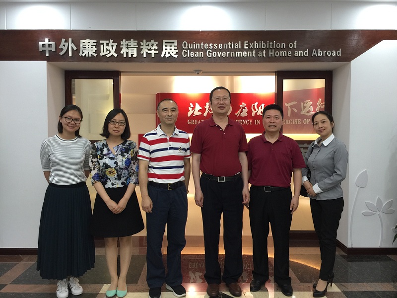 2018年5月14日,国家电网管理学院、中共国家电网公司党校党委委员、纪委书记、工会主席、副校长苑存官与综合部、知识中心等部门工作人员访问廉政建设协同创新中心。中心主任邓联繁教授向苑存官书记一行详细介绍了“中外廉政精粹展”的相关内容。