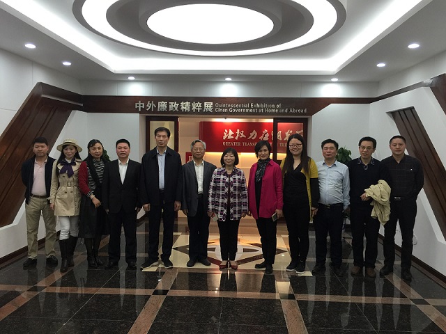 2018年3月28日,湖南省君子文化研究会会长李利君、执行会长魏忠胜与研究会部分领导专家访问中心,参观“中外廉政精粹展”并洽谈合作事宜。廉政建设研究基地主任陈丽影教授、中心主任邓联繁教授与中心部分专家参加座谈。