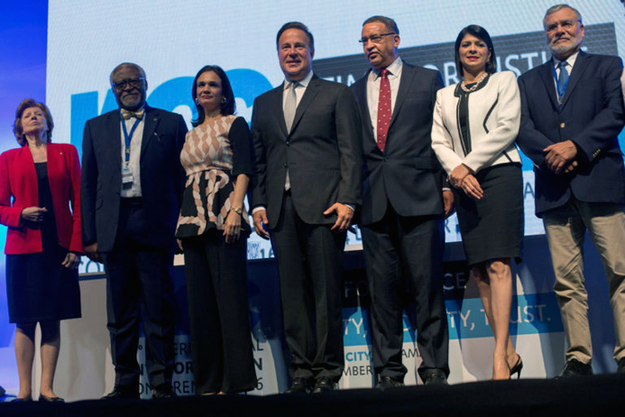 应第17届国际反腐败大会组委会的邀请,廉政建设协同创新中心首席专家王明高教授、副主任谭志君教授、特邀研究员郑军武、王习加和办公室主任陈鑫铭博士,于2016年12月1日至4日出席在巴拿马首都举行的第17届国际反腐败大会。本次大会的主题为“正义、公平、安全和信任的时代”, 巴拿马总统Juan Carlos Varela与副总统Isabel Saint Malo莅临开、闭幕式并致辞,出席会议的还有:国际反腐败大会组委会主席Akere Muna、透明国际主席Jose Ugaz和透明国际创始人Peter Eigen、国际反腐败大会组委会副主席Huguette Labelle等领导和嘉宾,共有156个国家和地区的1600名政府官员、专家学者和机构代表出席大会。