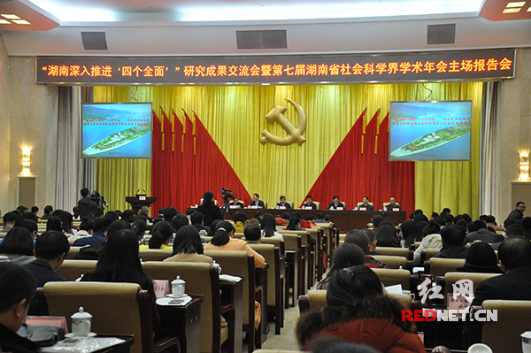 11月28日下午,由湖南省委宣传部、湖南省社会科学界联合会共同主办的第七届湖南省社会科学界学术年会主场报告会在长沙召开。中国社科院财经战略研究院副院长夏杰长,湖南省人大常委会副主任谢勇,省社科院院长刘建武,省委党校教授肖万春作主题演讲。湖南省社科联党组书记、副主席宋智富,省委宣传部部务成员、省政府新闻办公室副主任肖君华出席会议。湖南省社科联机关干部、省级社科类社会组织、高等院校、市州社科联负责人,以及社科界的专家学者和年会论文获奖作者共300余人参加了会议。